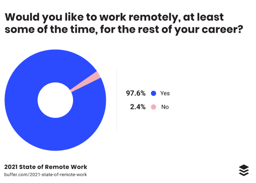 According to the GitLab Remote Work Report 2021, the main benefits of remote work cited by employers are increased productivity (42%), increased efficiency (38%), a reduction in bureaucracy and politics (24%), and improved documentation and process (20%). And guess what? Video conferencing contributes to all of these!