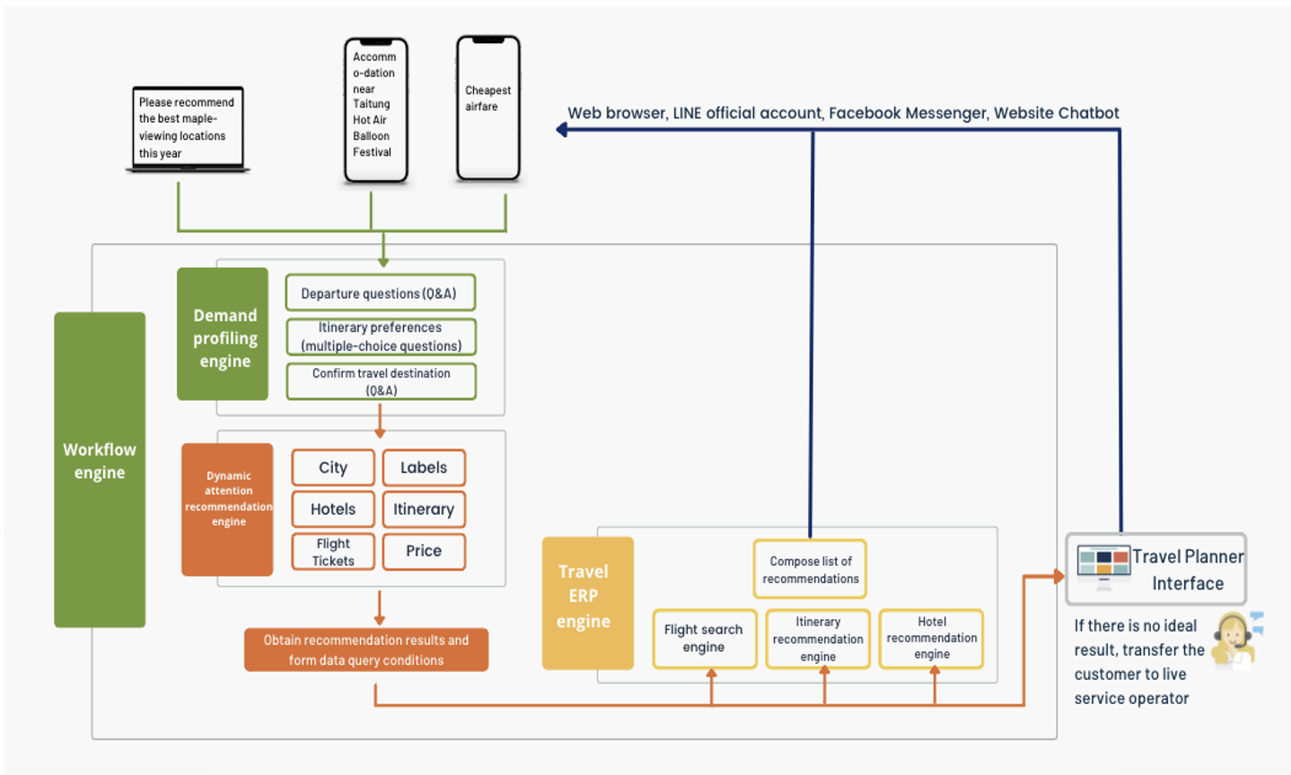Since travellers’ needs change rapidly, Riversoft uses its in-house-developed Dynamic Attention technology to comprehend their needs, match them with the real-time inventory, and recommend travel products via the website, instant message channels, and emails.