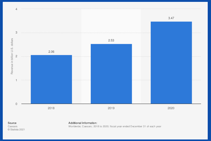 Contrary to its competitors, this company is heavily focused on the U.S. audience and offers both physical sports betting and typical casino games. It also provides online gambling, acting as a mix of these three and thus attracting many people from different niches. Currently, this business is worth $18.6 billion, and in 2020 it made a bit more than 5 billion dollars in revenue.