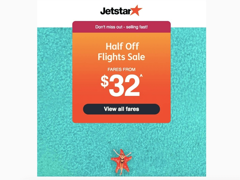 Jetstar, for example, has done an excellent job at streamlining their emails for mobile. Their mobile and desktop versions are identical, including promotional offers and passenger information, but the experience has been carefully adapted to the device in hand. The material is easy to read, the design is consistent, and there are no bugs or errors as you scroll thanks to their usage of a responsive email template.