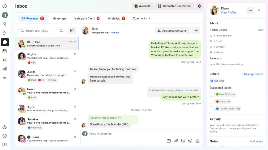 Also, the fact that customer care agents can address multiple queries within a short time makes it possible to reduce your labor costs. For example, Meta provides a free business suite that helps you respond to messages and comments from Facebook, Instagram, and WhatsApp.