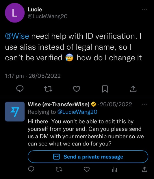 Customers may also leave comments about their inquiries or challenges on your social profile. Responding to customer comments will show that you are committed to providing top-notch customer service and building a relationship with your prospects. This is an effective way to increase Instagram followers, Facebook, or Twitter engagement for your business. See how Wise does this on Twitter: