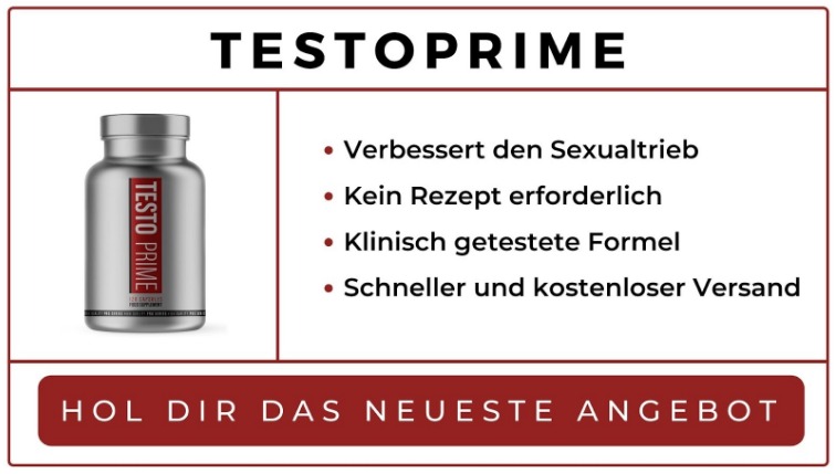 Ist ein weltweit bekannter, rein natürlicher Booster für die Testosteronbildung. Einer der besten unter den vielen getesteten Produkten. Durch TestoPrime wird nicht nur der Testosteronspiegel reguliert, sondern auch andere großartige Vorteile ergeben sich: