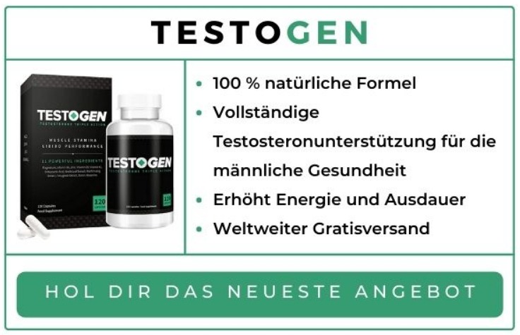 Testogen verspricht nicht nur sehr viele Vorteile, sondern lässt diese auch eintreten. Es beschleunigt den Abbau von ungesundem Fett und fördert den Aufbau der Muskelmasse beim Training enorm. Dadurch wiederum erhöht sich der Stoffwechsel und der Körper bekommt mehr Energie und Lebensfreude. Testogen ist nicht nur in Kapselform erhältlich, sondern auch als Instant-Tropfen. Nimmt man diese Tropfen gemeinsam mit den Kapseln, wird die Wirkung der Pillen enorm verstärkt.