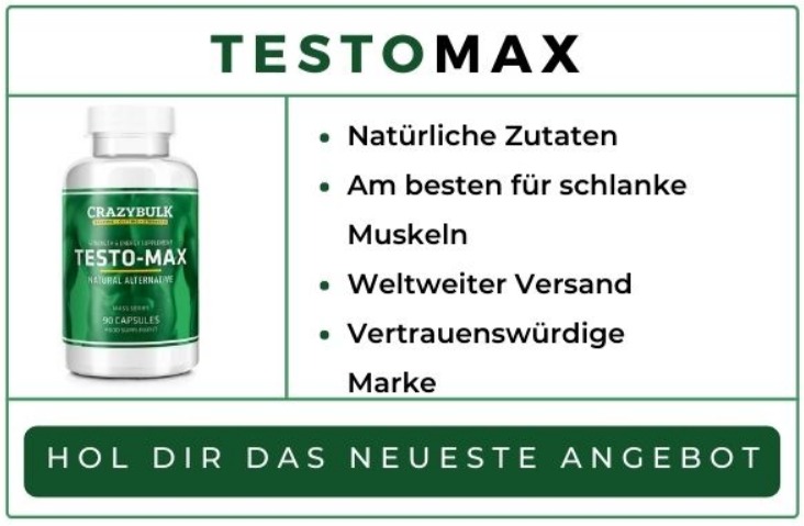 sind in Testo-Max zu finden. Dadurch wird nicht nur das körperliche Aussehen verbessert und die Leistungsfähigkeit erhöht. TestoMax lässt den Körper besser erholen nach Anstrengungen und der Körper und die Muskulatur entspannt um einiges leichter. Müdigkeit und Abgeschlagenheit nach harten Trainingseinheiten gehören der Vergangenheit an. Das Erholungspotenzial wird positiv unterstützt.