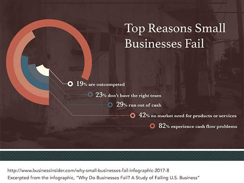 A study conducted by a US bank revealed that 82 percent of small businesses crumble because of cash flow issues. This means that even if your business might be profitable on paper unless you have a steady cash flow, you will face problems.