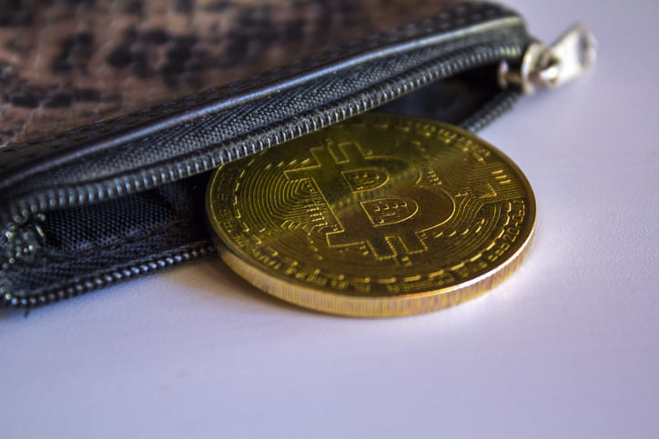 Bitcoin in leather wallet