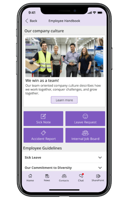 - Easily publish company content and get employee feedback.