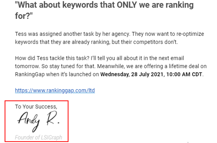 If you want to make your email signature look more sophisticated, use a handwritten font to highlight your name.