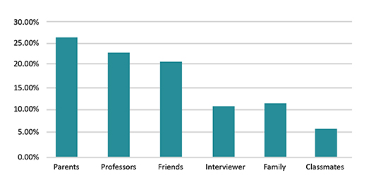 With new generations comes the energy of those first entering the workforce, marked by a desire to get work done and prove their worth in the short term but also by inexperience regarding the business world and the internal history of the company. However, they possess almost innate technological knowledge and can operate technologies with enviable ease. Therefore, the need for knowledge transfer between generations has become bidirectional, such that establishing reverse mentoring programmes can be useful. This need within organisations for employees to share their knowledge is complemented by millennials’ wish to receive constant feedback. In a survey conducted at IESE, 65% of students reported having asked for feedback and explained that they did so to understand where they were making mistakes and how to improve and make important decisions. Parents, professors, and friends are crucially important in providing this feedback (see Figure 2). When these students take on job positions, their bosses will take on the role of their professors.