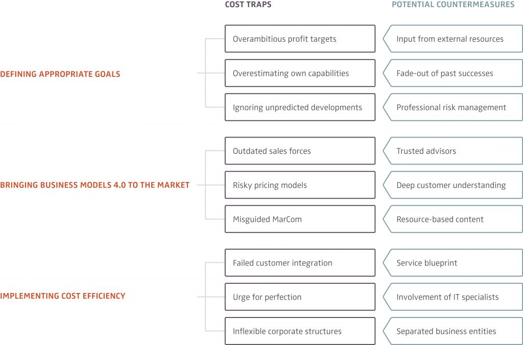 This intensive exploration of cost traps and the challenges of overcoming them should not deter industrial enterprises from using modern technologies for innovative business models. Current market developments make it indispensable to introduce such models in order to remain competitive.