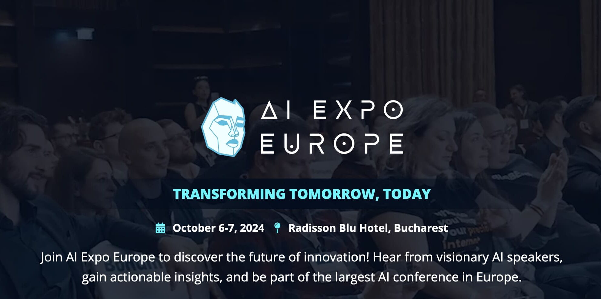 BUCHAREST, Romania – AI Expo Europe 2024, the continent’s leading artificial intelligence conference, is set to bring together over 3,000 industry leaders, innovators, and AI enthusiasts on October 6-7, 2024. This landmark event, organized by the founders of Crypto Expo Europe, will feature 100+ international speakers, 30+ exhibitors, and 50+ workshops and seminars, making it the largest and most comprehensive AI gathering in Europe this year.