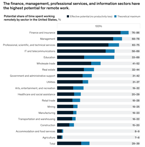 By November 2020, McKinsey found that remote work was “concentrated among highly-skilled, highly educated workers in a handful of industries, occupations, and geographies.” But technologies like UC enable more industries to take full advantage of telework opportunities.