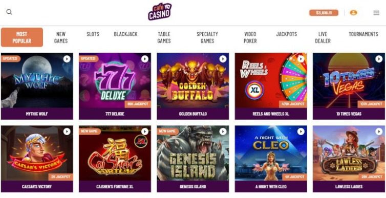 Cafe Casino has a rich selection of mobile games, including classic and video slots, progressive jackpots, blackjack, roulette, video poker, and specialty games – and it knows how to reward both new and regular players.