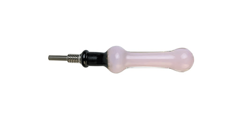 This unit is not quite as simplistic as some of the others listed, but remains an extremely simple and effective dabbing tool. This glass nectar collector comes with a 10mm titanium tip, and the tube portion of this tool is bulbous on each end. This extra space allows users to take bigger hits of their concentrate than those offered by many other honey straws. The 4” length helps the smoke to cool before reaching the mouth of the user, making for a smoother hit during use.