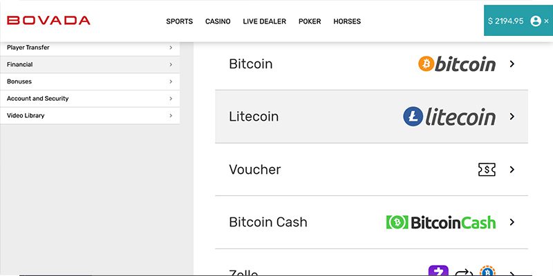 Players can use Visa, MasterCard, American Express, and Vouchers for site-related payments. Bovada also provides alternatives for crypto depositors to make deposits via Bitcoin, Bitcoin Cash, and Litecoin.