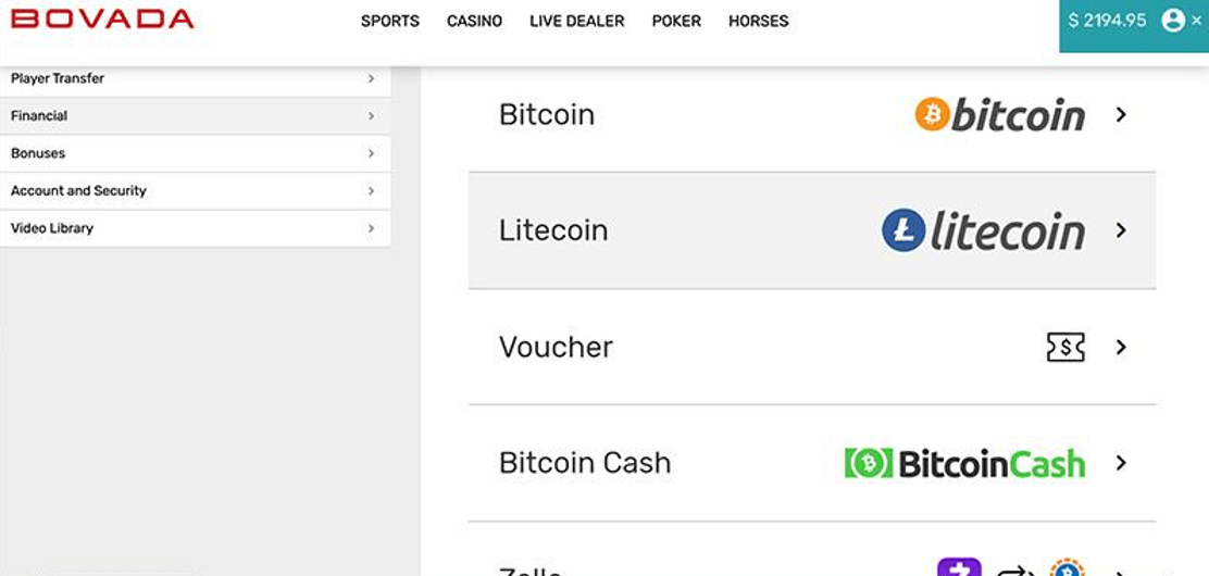 While you can utilize Visa, Mastercard, and American Express for site-related transactions, Bovada offers Bitcoin, Bitcoin Cash, and Litecoin deposits and withdrawals for those looking to make swift payments.
