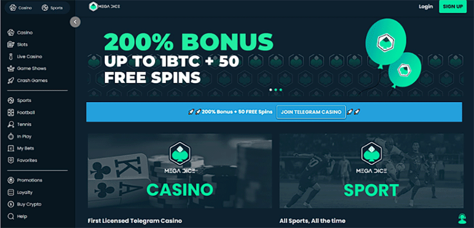 #5 MegaDice — 200% up to 1 BTC + 50 FSÂ