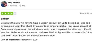 The withdrawal limits are $20 – $9,500 for Bitcoin and $100 – $3,000 for checks by courier. Using bank wire puts you in the $1,500 – $9,500 payout range.