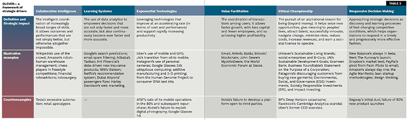 Moving the level of analysis to the meso-level, CLEVER is a framework of strategic drivers, that is the forces that offer strategic advantages and — therefore — trigger strategic change. These six drivers are: