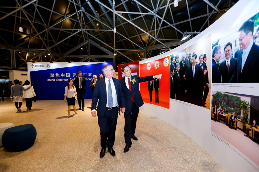 In his opening speech, Prof. Li expressed a warm welcome and his sincere gratitude to all the officials and guests who attended the event, and highlighted some of CEIBS’ important achievements over the past quarter century. He then thanked the Ministry of Commerce of the PRC, the State Education Commission of the PRC, the Shanghai Municipal People’s Government and the European Commission for granting CEIBS the educational flexibility and autonomy it has enjoyed since it was first established. He also thanked officials from the Chinese central government and the EU for their recognition of the school and continuous encouragement. He expressed further gratitude to the school’s executive partners, SJTU and the EFMD, former leaders of CEIBS, faculty, students, staff, and alumni, as well as fellow global institutions of management education and partners from various sectors. “CEIBS should strive to be not only a world leading business school, but also an expert in Chinese management education,” he said. “And the school will do everything within its means to achieve its mission and live up to the expectations of this new era.” Finally, President Li called on everyone to work together for a better future.