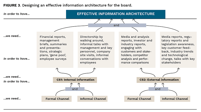 Figure 3 suggests a logical structure showing the necessary – oftentimes necessary and sufficient – conditions in order to shape a desired information architecture for the board.