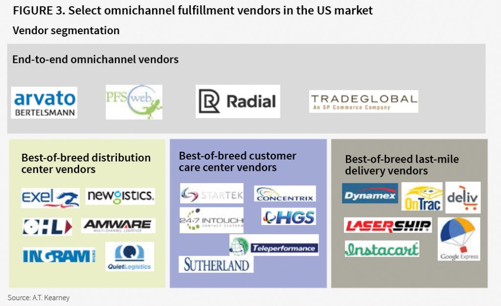 Fortunately for brand manufacturers, a robust third-party omnichannel fulfilment vendors market is available to provide them with the capabilities they need to quickly get started (see figure 3). Such vendors fall into two broad categories: