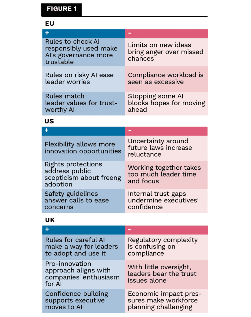 Regulations can build leaders’ trust in AI, but balancing risks and progress has trade-offs.