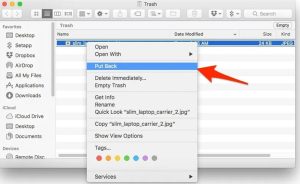 - View the image file you deleted, right-click every photo you want to restore, and choose “Put Back”, then you’ll find the image in its original location.