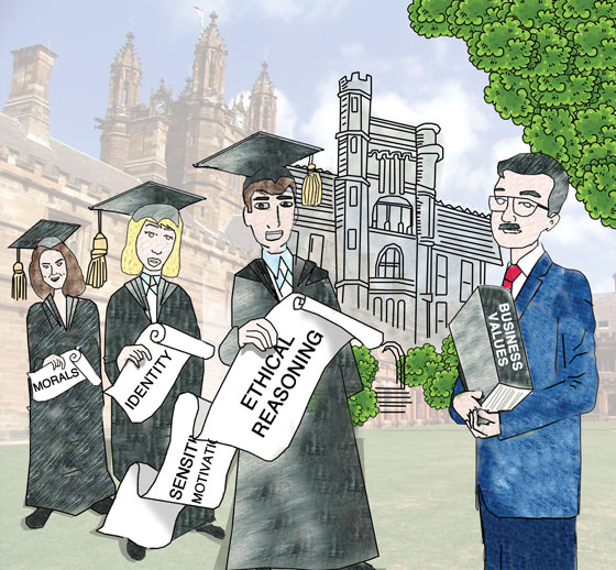 Recognising this can help to devise a curriculum and learning methods which will make a contribution to the moral development of our students. Bebeau6 achieved this in the field of the professional development of dentists, and her work can be applied to any profession. It can be applied to the design of university curricula and also inform the design of in-service continuing professional development. What characteristics of a business education will develop each of the four capacities above?