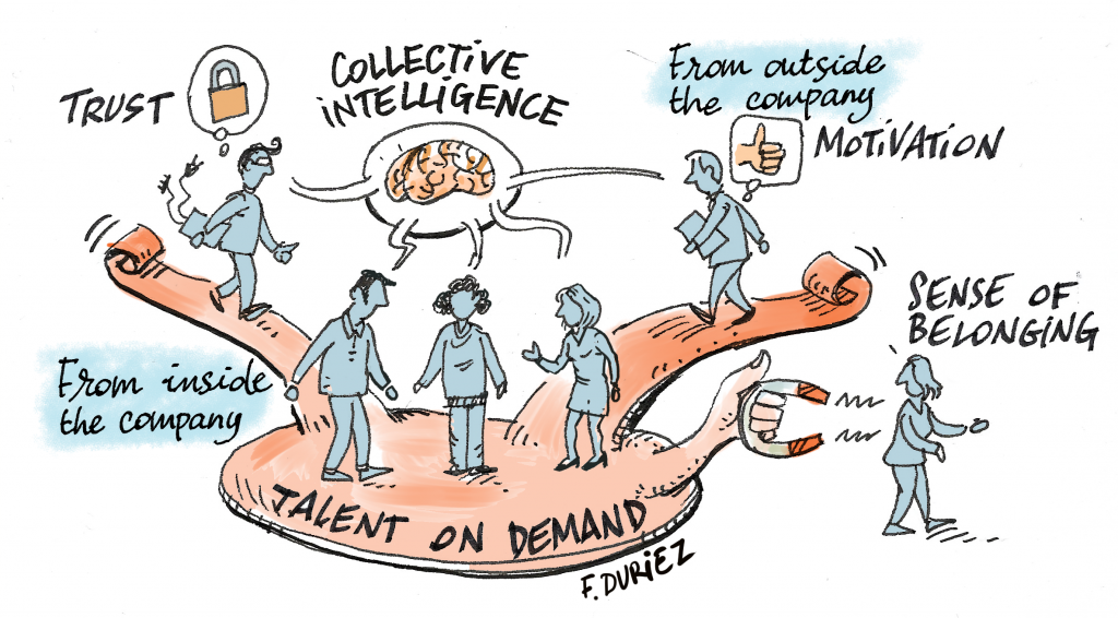The third characteristic trait of open organisations is the idea of Talent on Demand. Indeed, the businesses of the new world have honed the capacity to mobilise both in-house and external talent where it’s needed, for the length of a project. The example of DARPA is edifying – but there are many others.10 New-paradigm businesses have instituted structures and processes that allow them to gather the best talents around their projects, whether these talents come from within the organisation or from without. This certainly poses some contractual challenges (husbanding intellectual property, for example; guarding company secrets, etc.), but above all it poses organisational questions: How do you identify and mobilise talent for use as needed? How do you create trust on demand? How do you spark the collective intelligence you need when you need it? What new work spaces does this new way of working require? These new-paradigm businesses, although they don’t yet have all the answers, are hard at work on solutions. At the same time, the number of platforms that allow companies to mobilise talent on demand – over a system of highly varied verticals – has truly exploded. Some have become industry standards (Freelancer, UpWork, Presans etc.). But this will be the subject of a future article.