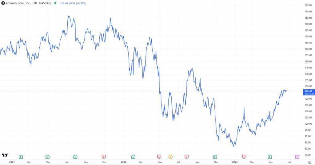 NASDAQ:AMZN (1.336T USD): Amazon stock price shows a noticeable and stable upward movement. This trend appears to have sufficient momentum, and no significant fundamental issues are anticipated. The blocked merger with Activision Blizzard (NASDAQ:ATVI) worth $69 billion has not affected the stock price, and the hearings on this matter continue.