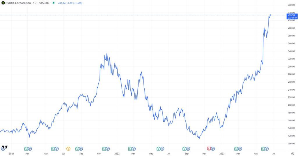 NASDAQ:NVDA (1.048T USD): NVIDIA Corporation has recently joined the prestigious “Trillion Club” and become one of the most notable companies of this year. This company is also engaged in the technology race driven by AI and strives to leverage this trend for maximum benefit.