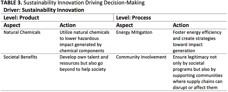 For example, companies can start with a product focus, and concentrate on the Material Innovation and Ethical Leadership categories. If companies are more production-oriented, they should emphasize Clean Production and Supply Chain Transparency. While Materials Innovation and Clean Production are for technology-oriented companies and challenges and Ethical Leadership and Supply Chain Transparency are more related to those with relational capabilities.