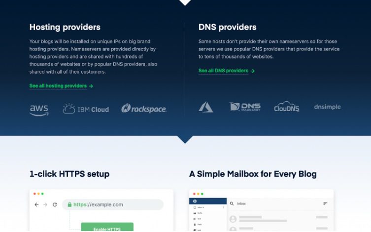 Easy Blog Networks is a bit different. This company openly displays the hosting providers that they work with. Since EBN works with big-name providers, there’s no need to keep this information from customers.