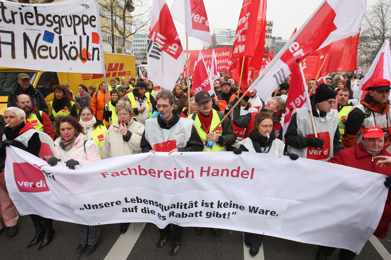 Most EU countries have a federal minimum wage. Yet, Germany does not. This might not be problematic in and of itself. But for the last ten years, Germany has been restraining wages in order to ward off inflation and boost export. Without wage increases to match, however, domestic spending will not support economic growth. Low wages are leading to increase in poverty. Official statistics reports that poverty risk grew from 15.2% in 2007 to 16.1% in 2011. “Poor” is defined as those who received less than 980 euros a month in 2011. This is a major issue for certain population groups. The “at-risk” percentage grew substantially in population group between 55 and 64 from 17.7% in 2007 to 20.5% in 2011. In contrast, the percentage increase among people between 18 and 24 years was only half a percent, from 20.2% in 2007 to 20.7 % in 2011. This is a sign of a “trans-generational deficit” that may be a forerunner of new financial troubles for the economy, as well as some inevitable discontent with the growing social inequality.