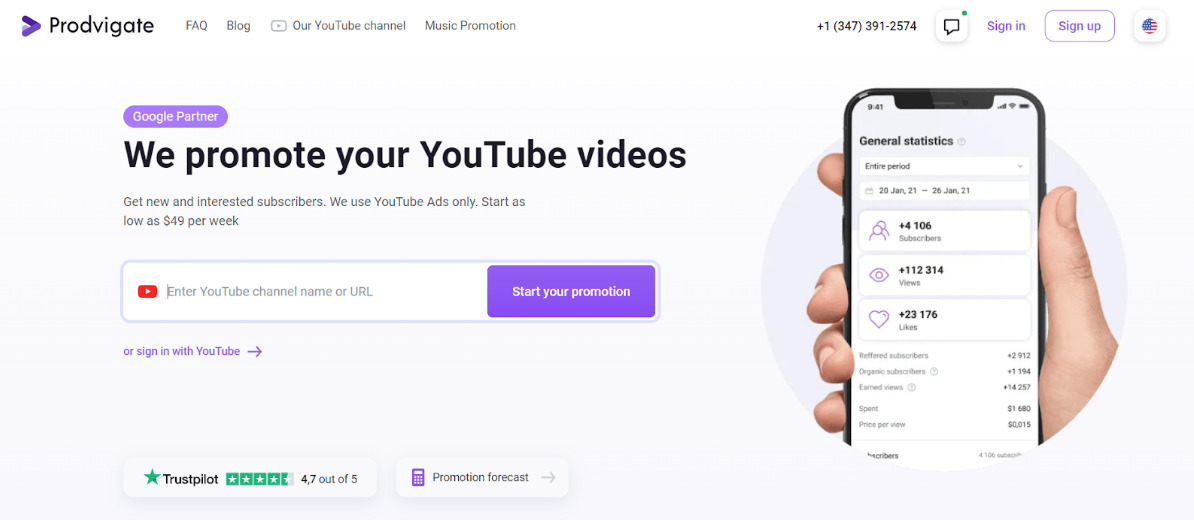 Let us highlight that Prodvigate is the official Google partner. The service provides comprehensive help to all kinds of YouTubers. There are zero rules for your content. So, advertisers prioritize finding your videos’ audience instead of commanding you.