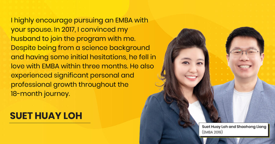 Today, we have the privilege to delve deeper into Suet and Shaohong’s inspiring EMBA journey and discover the invaluable lessons they gathered along the way. So, let’s find out more about their captivating story over a quick chat.