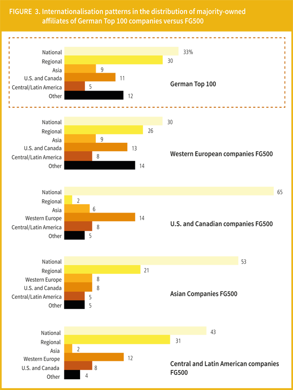 Whereas facts suggest that German companies are among the best equipped and most active to pursue global growth, they offer limited insight to determine the real extent to which these companies are truly global. This article aims to offer a data-driven, rigorous, and comprehensive assessment of their actual degree of internationalisation and compare it with the one of other large enterprises based in the rest of the world.