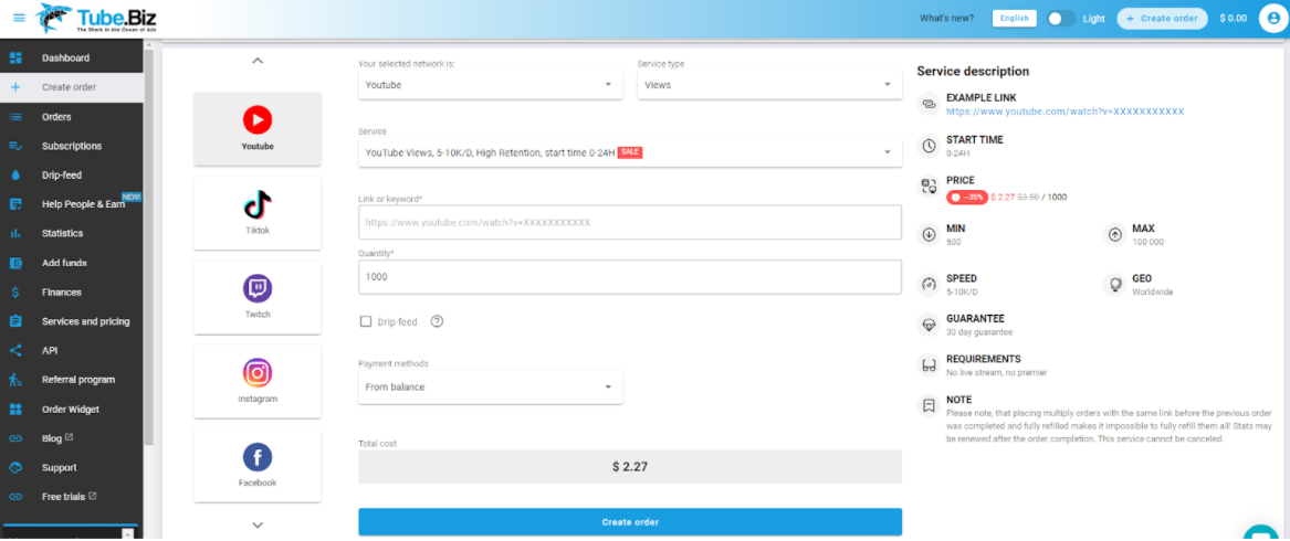 The first and most fundamental difference is money. SMM panels are organized on the principle of commodity-money relations: you pay for buying likes, comments, views, subscribers. For example, there is a quite famous site TubeBiz. Choose any convenient way to pay for the order and get your subscribers on Instagram, likes on Facebook, or views on YouTube after a while. It’s simple and fast.