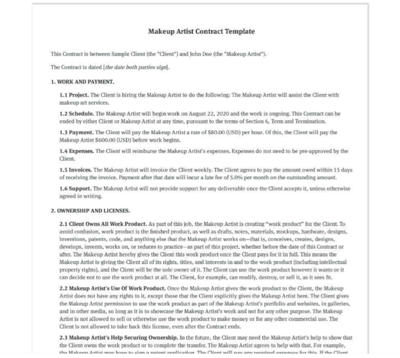 You can easily find a makeup contract template online – all you need to do is change the words to suit your work and terms.