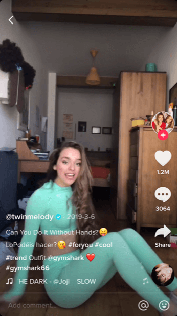 In early 2019, fitness apparel company Gymshark pioneered the hashtag #gymshark66. Influencers and TikTok users used this hashtag to show off their Gymshark gear. YouTubers Twin Melody, who have 16.5 million followers on TikTok, posted several videos wearing their Gymshark clothes. This partnership was a great way for Gymshark to gain more brand awareness.