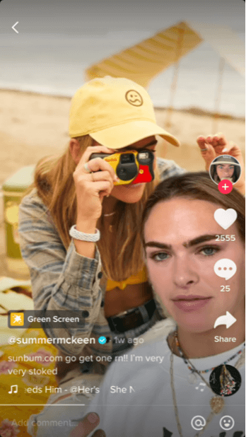 YouTuber Summer Mckeen worked with Sun Bum to design a hat sold on their website. She created a TikTok to announce the new product to her followers, telling them the website link where they could purchase a hat for themselves.