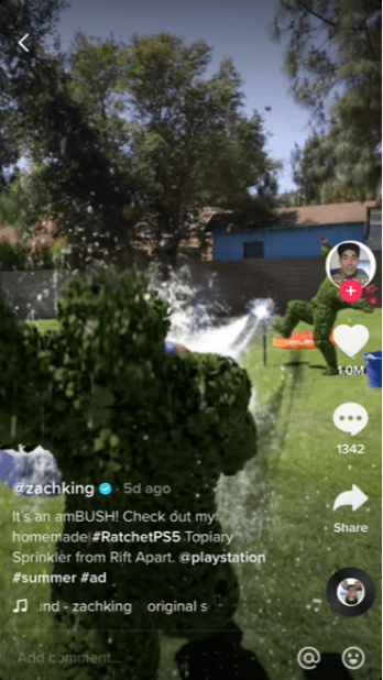Zach King is a YouTuber known for his “short magical videos” that bend the laws of nature. To kick off the start of summer, Zach partnered with Playstation to create an advertisement designed to get Zach’s followers excited about summer fun. With 60.3 million TikTok followers, Zach has a massive following on the app — and this collaboration was a smart move on Playstation’s part, allowing them to expose their brand to an entire new audience.