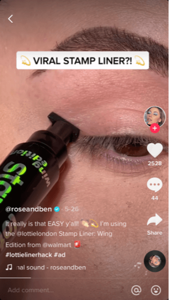 Rose Siard is a beauty YouTuber and TikToker who posts reviews, tutorials, and more for her 664,000 TikTok followers to enjoy. She recently showed her followers a #lottielinerhack, demonstrating how to use the Lottie London Stamp Liner: Wing Edition product to create the perfect cat eye. How-to content is a great option to both advertise a new product and simplify how to use it.