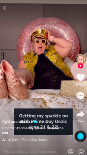 Anna O’Brien, who is in the fashion niche and has 7.9 million TikTok followers, worked with Amazon to advertise Prime Day. She created a fun video that received hundreds of thousands of likes, telling her followers how they could also take advantage of Prime Day deals on certain dates.