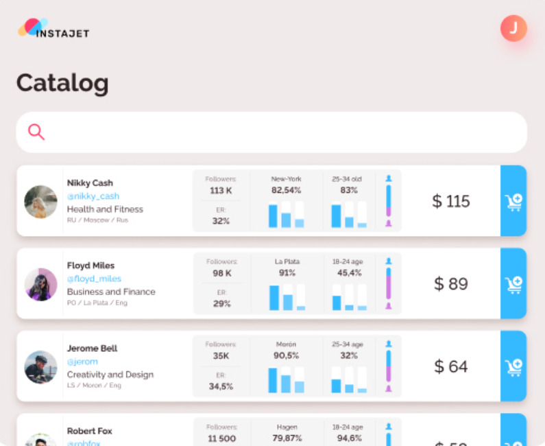 InstaJet.io works as a marketplace, connecting the advertisers who want to promote their brands on Instagram and influencers all over the world.