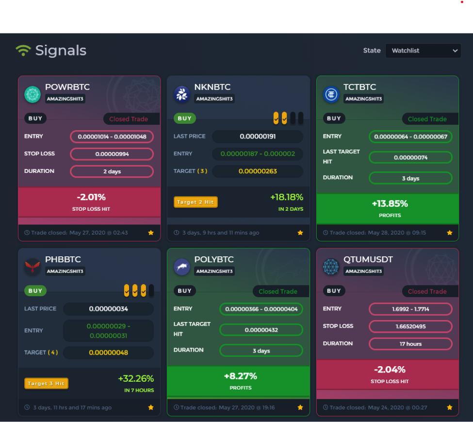 ProfitFarmers’ cryptocurrency experts use sophisticated tools to find good trading opportunities and post them on the platform through the form of signals.
