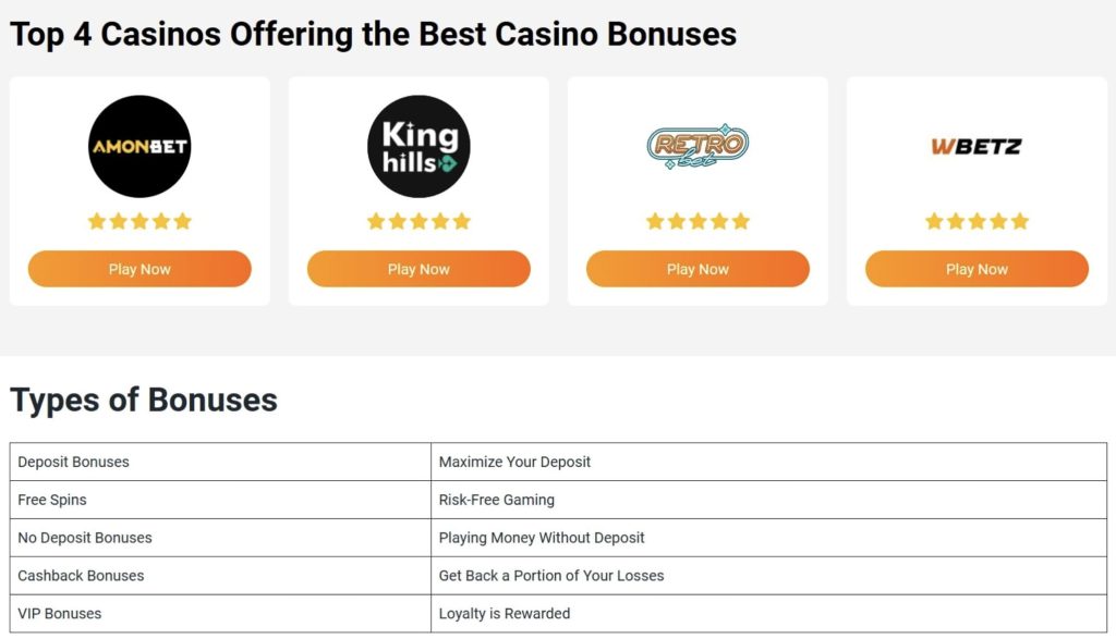Top 4 Casinos offering the best casino bonuses