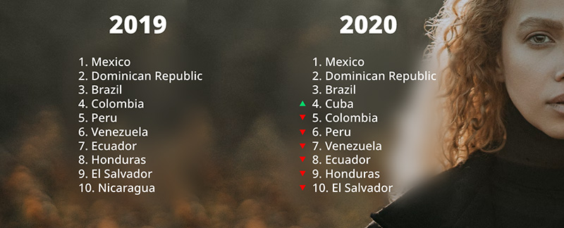 In 2020, the immigration rates dropped for understandable reasons: most importantly, because the coronavirus pandemic put many things on hold. This is why it’s not surprising that in 2019, there were almost twice as many Latin girls who immigrated to the US than in 2020, or 8,939. That year, the top 10 most popular countries for Latin brides for marriage included: